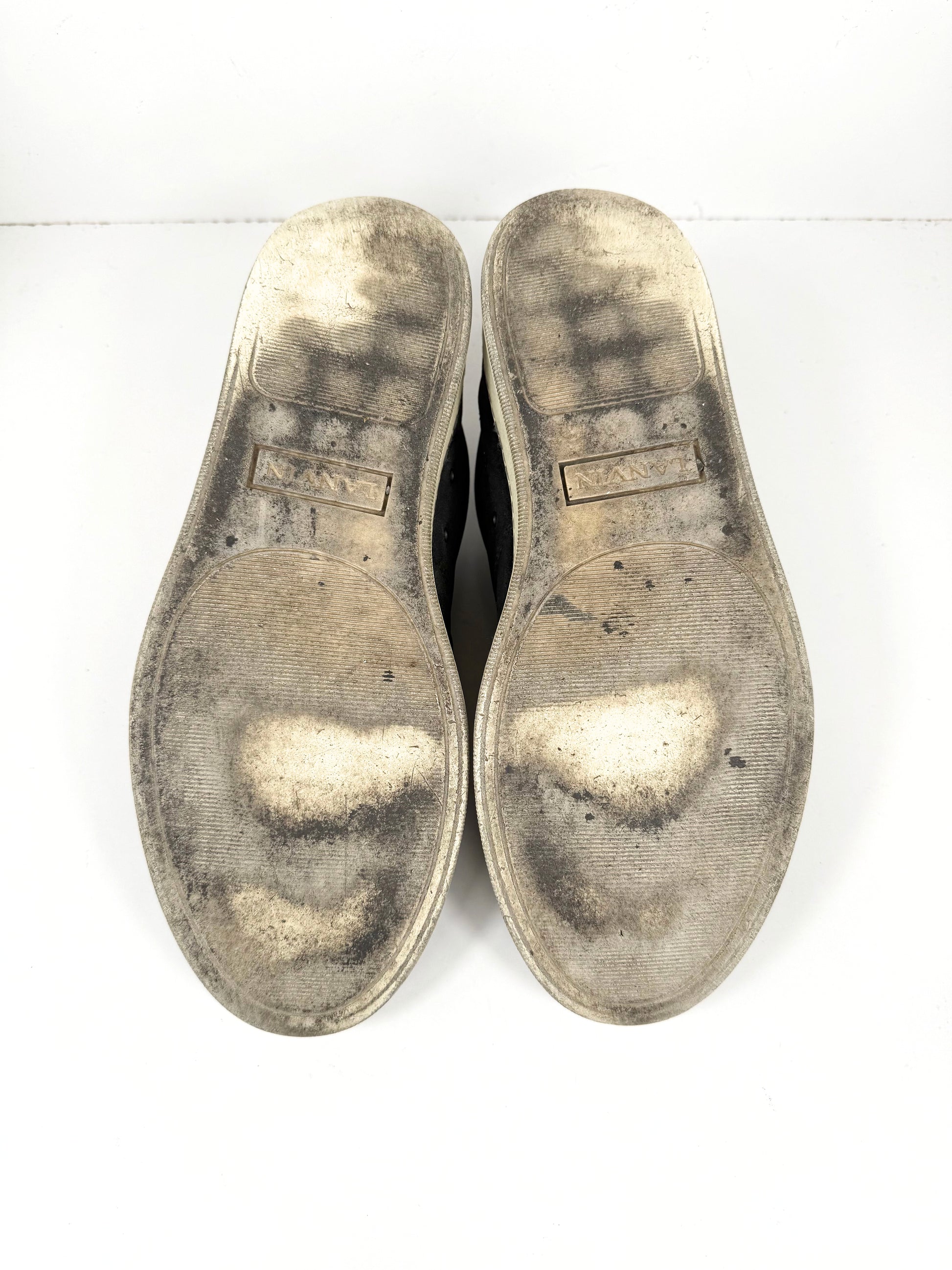 Lanvin patent cap toe, a masterclass in understated luxury. Crafted from premium leather and suede, these captoe shoes offer a sleek silhouette in a distinctive black shade, perfect for the modern gentleman who values both tradition and innovation.