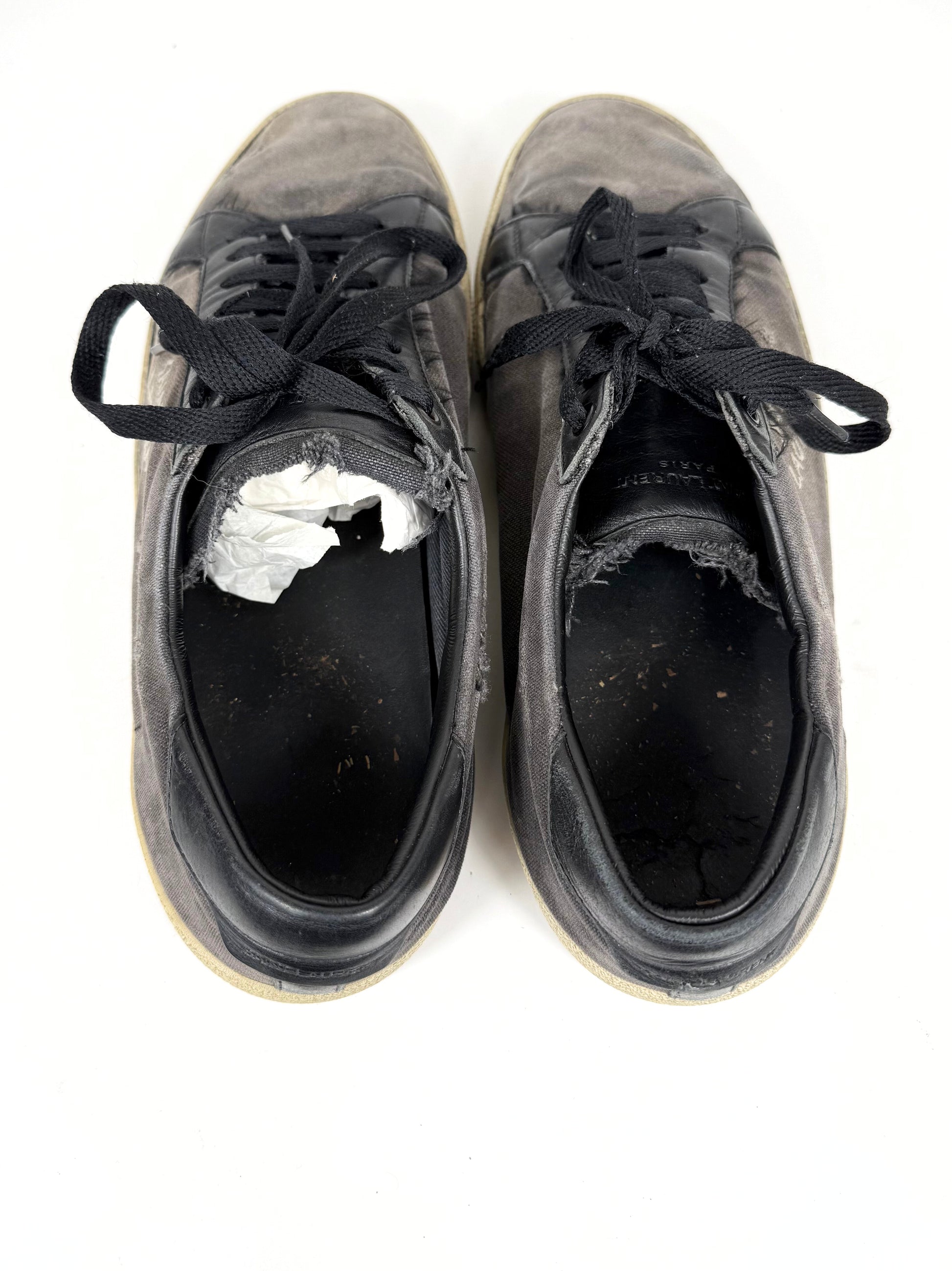Step up your street style with these pre-loved Saint Laurent SL/06 sneakers in gray and black. Made in Italy from premium leather and canvas, they feature a signature distressed finish, Saint Laurent logo, and a classic low-top design. Cool, versatile, and effortlessly Parisian. The perfect pair to elevate denim or sharp tailoring.