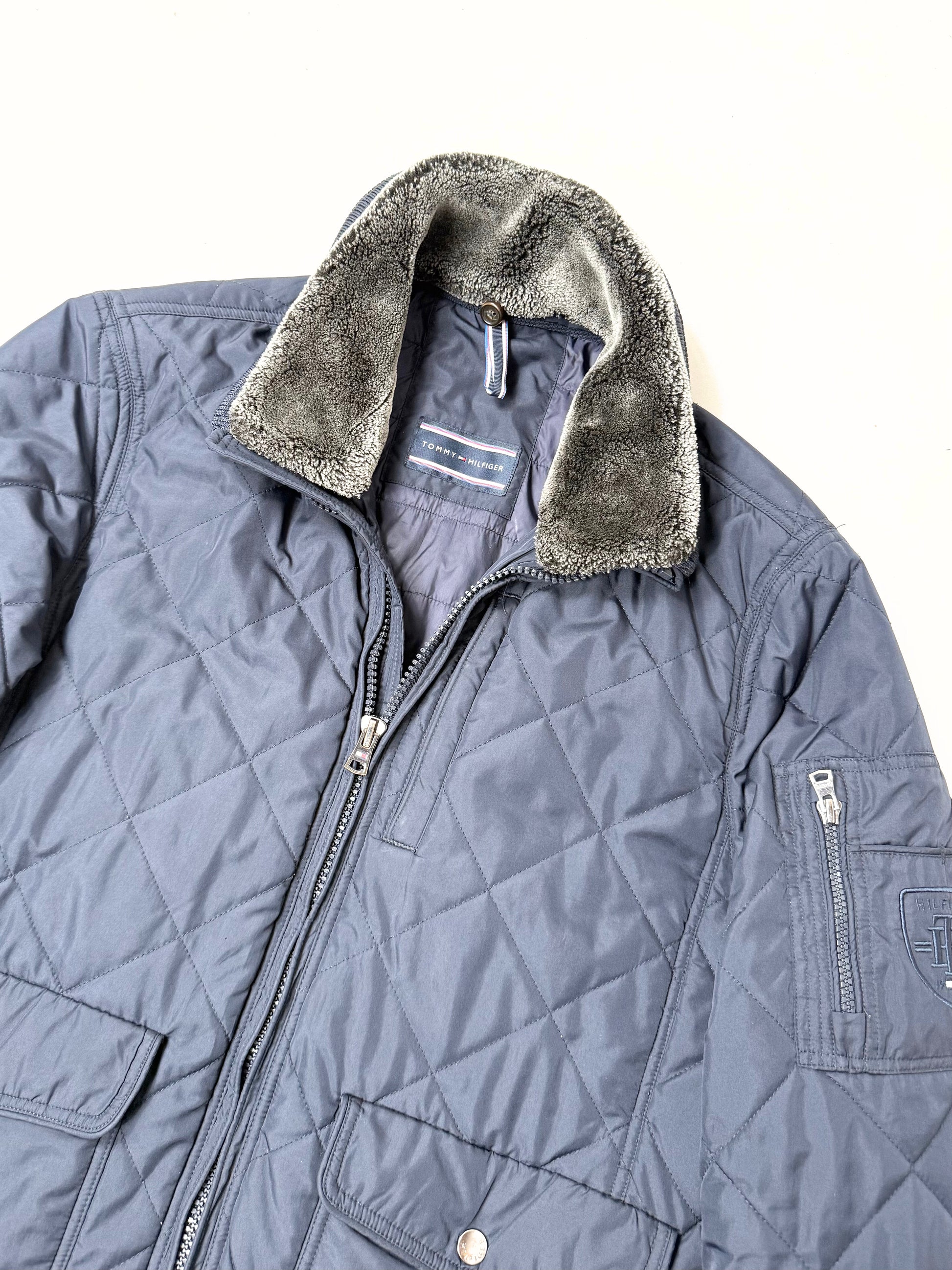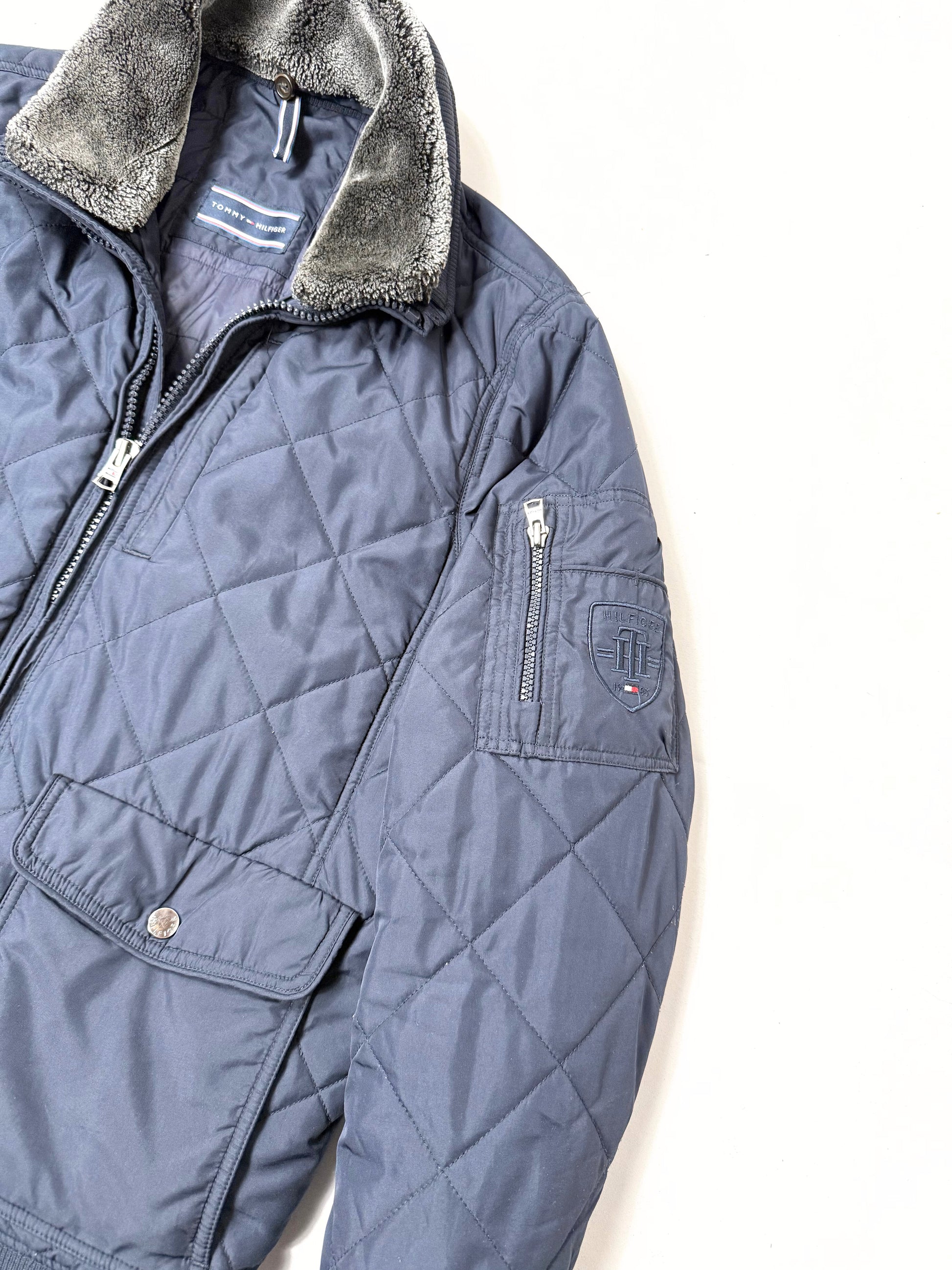 This pre-loved Tommy Hilfiger fur jacket in navy combines classic American style with modern cool. Featuring a soft fur lining on the inside of the neck for added warmth and comfort, this jacket offers both sophisticated style and casual versatility. The navy color and tailored silhouette make it easy to pair with any outfit, while the Tommy Hilfiger branding ensures iconic, high-quality design. Perfect for pre-owned designer jackets, luxury winter outerwear, and stylish casual coats, this piece is a timeless addition for those who value classy, comfortable, and durable fashion.