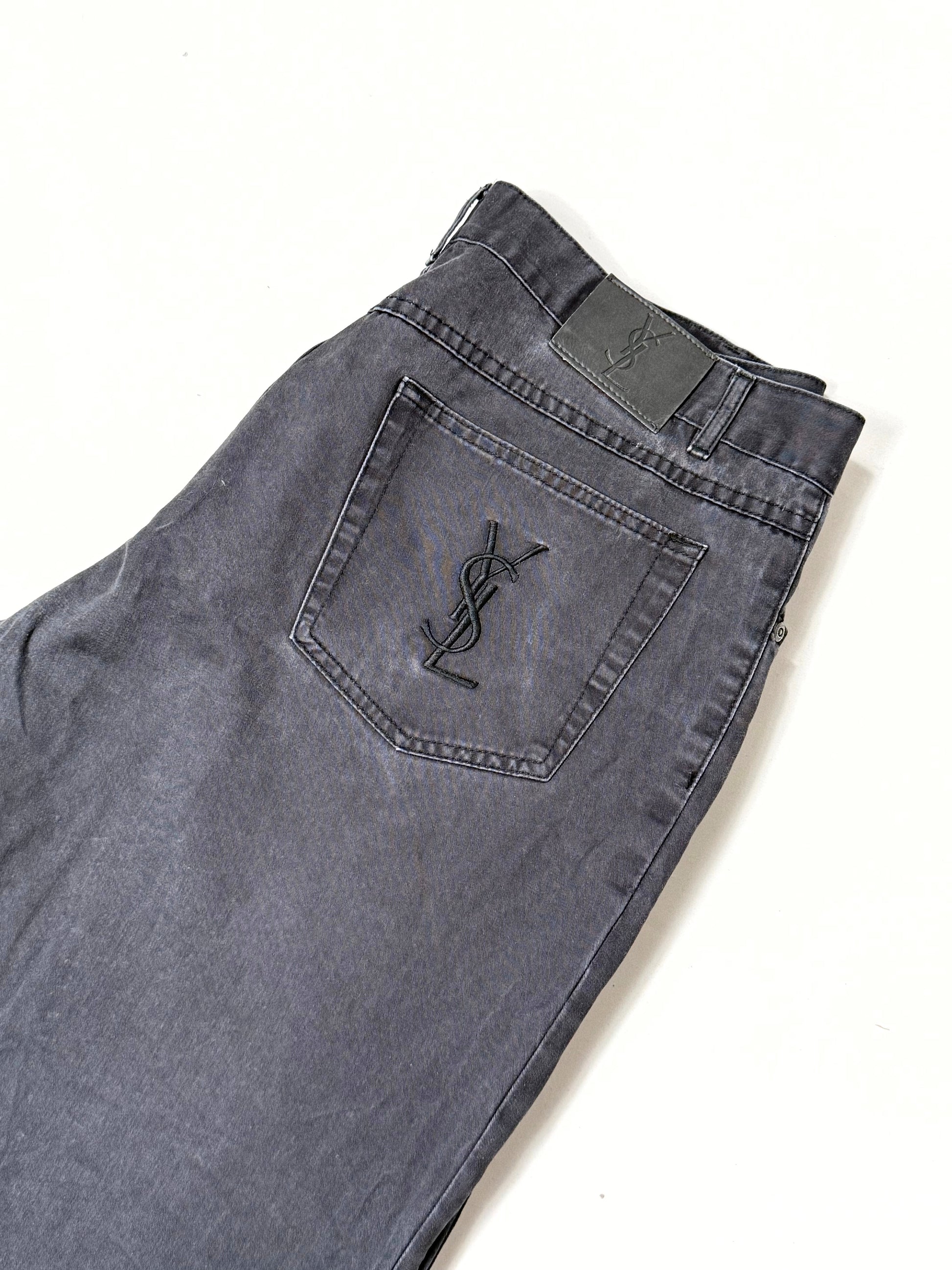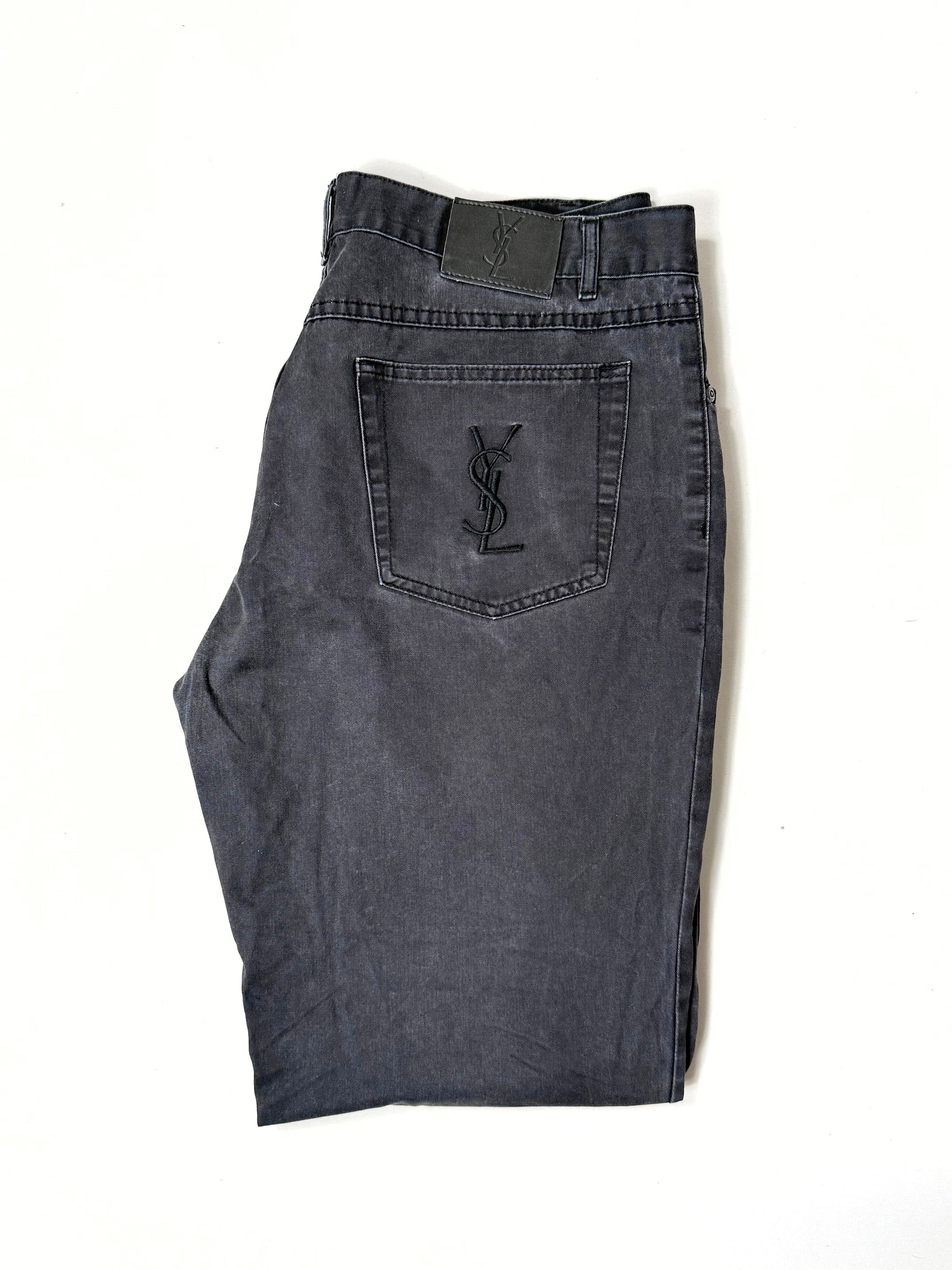 Add a touch of Parisian luxury to your wardrobe with these vintage Saint Laurent (YSL) dark grey jeans. Cut in a timeless straight fit, they deliver both comfort and style. The signature YSL logo on the back pocket makes them instantly recognizable, while the dark grey wash ensures versatile wear. A rare piece no longer sold in stores, perfect for collectors and Saint Laurent enthusiasts.